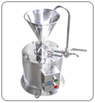 The product is fed to the hopper which leads the product into the gap between rotor and stator. The product is subjected to a high degree of shearing, cutting and rubbing between two metal toothed surfaces of rotor and stator and towards the discharge section. The processed product continuously leaves the mill through drain pipe if required, it can be re-circulated by three way cock and re-circulating pipe assembly.